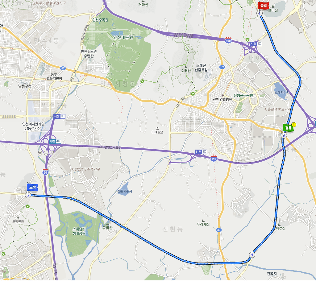 시흥에서 출발해서 인천으로 왔어요 ㅎㅎ