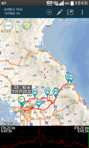 약 50km쯤을 달려