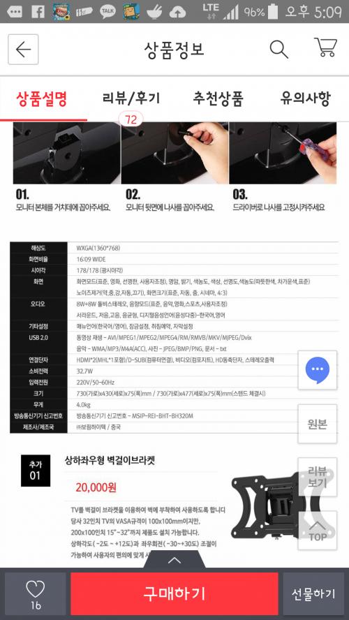 1366 768에 32인치라........ 해상도가 너무 낮네요 | ||