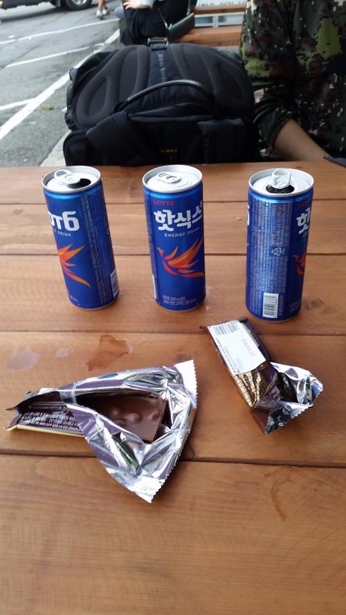 복귀길에 빗방울이 한두방울 떨어져서 수중전이될까봐 걱정하였으나 다행히 비는 안왔네요~근데 물놀이의 체력소모가 어마어마한지 아님 나이들어서인지 복귀길이 너무 힘들어서 중간에 카페인과 당분을 보충!