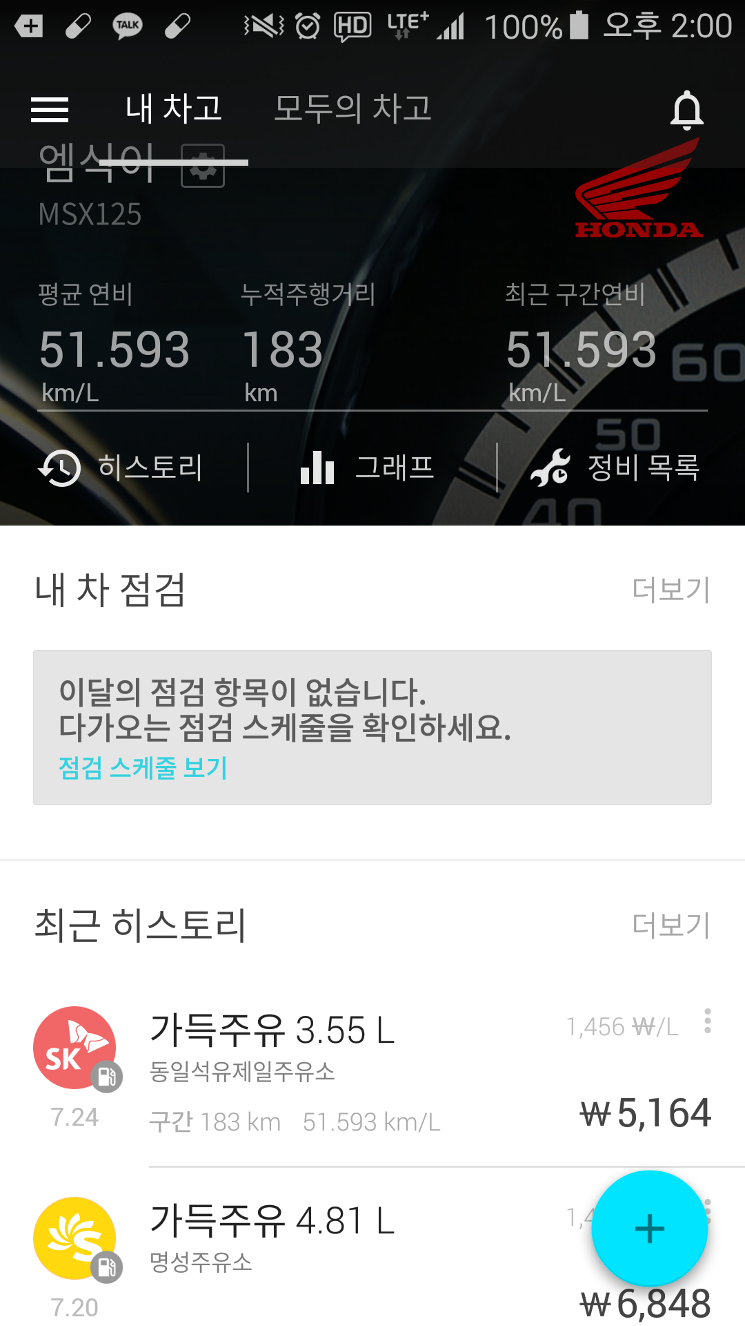 확실히 혼다는 연비와 내구성면에서는 125이하 바이크에서 왕인듯 싶어요. |