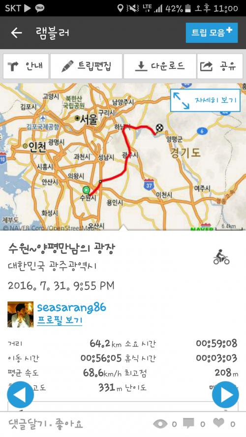 도로가 한적해서 잘 온것 같아요ㅋㅋ신호등도 별로없고 좋더라고요ㅋㅋ위협운전은 하지않았습니다? | ||