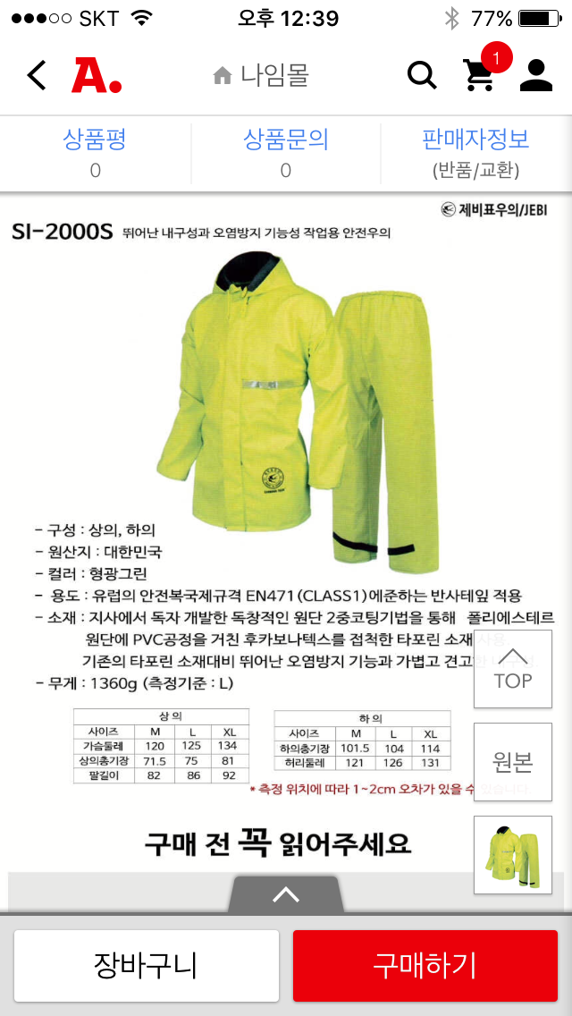 인식에 좋은 우의로 샀습니다 ㅎㅎ