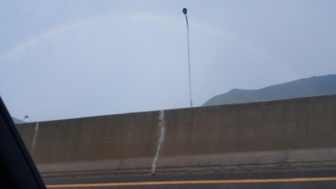 오는길에 빗방울이 떨어지던데 거가대교 가는길엔 무지개가 계속 따라오네요.