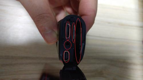 뒷커버에 고무캡이 있는데 이걸 열면 마이크단자와 충전단자가 드러납니다 충전중에도 모든 녹화가 되기 때문에