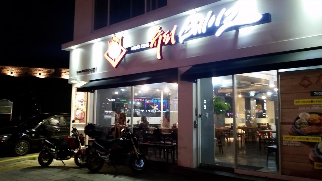 지난 일욜 밤바리겸 저녁먹으러 저렴한가격의 스테이크집이 있다는 소식을 듣고 찾아간 슈퍼스테이크북수원점(네비에서 슈퍼스테이크북수원점으로 나오네요) 수원장안문 입구 건너편에 위치해서 금방 찾았어요^^ 영업시간은 밤 10시까지 한다는데 밤9시에 도착해서 주문하고 먹으니 시간이 약간 타이트 했습니다~