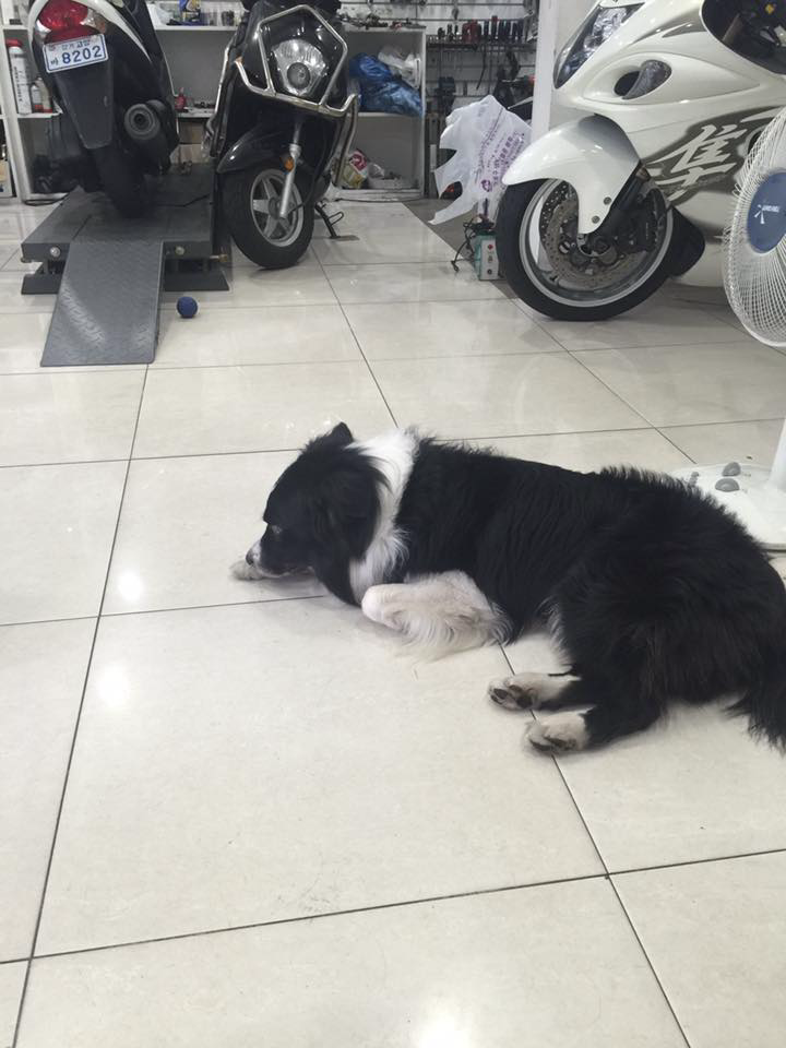 장착 다 끝나니까 갑자기 비가 쏟아졌습니다. 그렇게 5시 반정도까지 센터에서 죽치고...사진의 개는 방문 센터의 보더 콜리인데 목소리가 참 우렁차더군요ㅋㅋㅋ 센터 사장님바라기라 계속 쫒아다니고 다른 사람 말은 잘 안듣고..