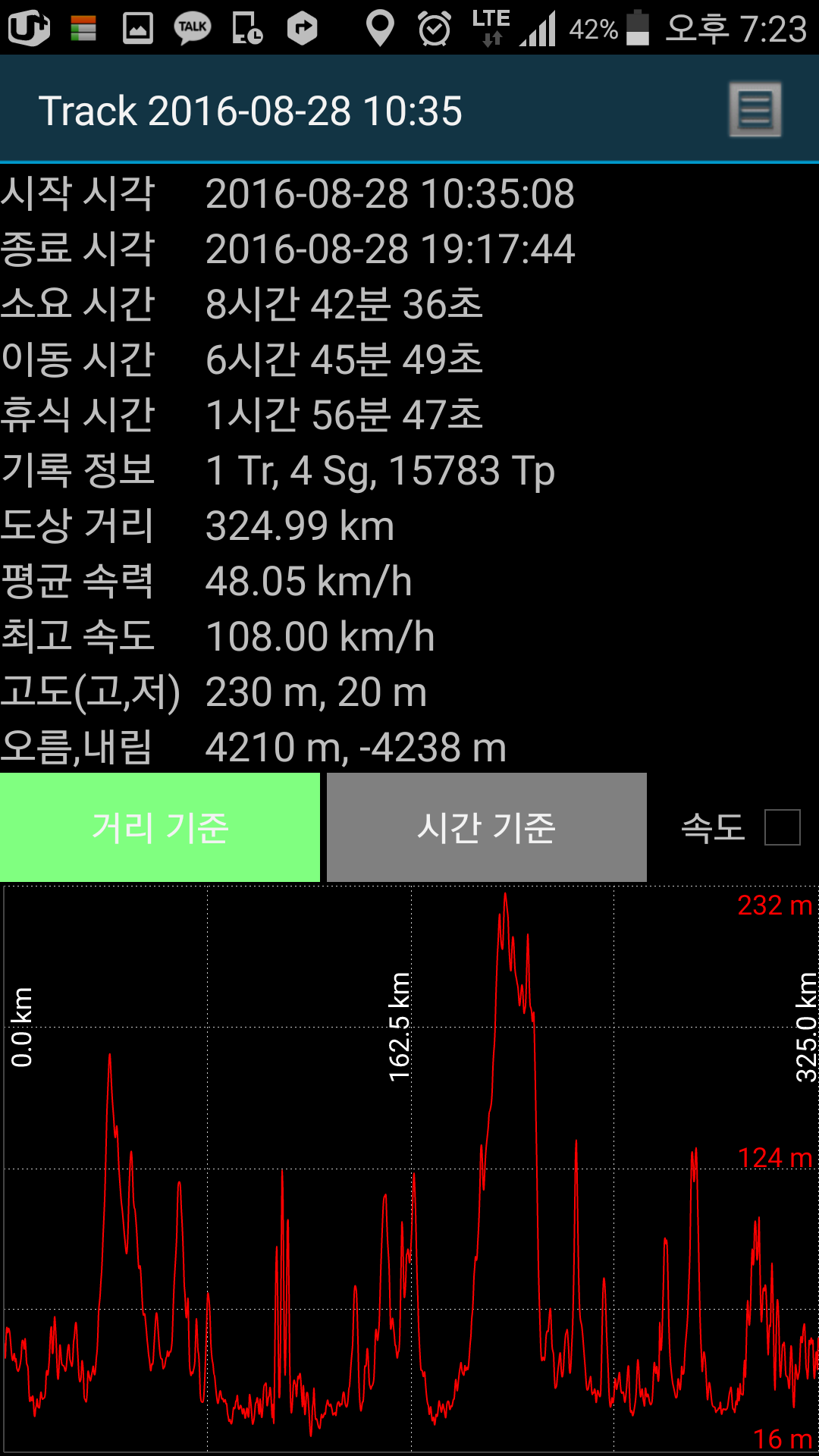 앱 말고 네비로도 체크해보세요~^^전 산길샘 어플이 네비상 속도랑 같게 기록되긴합니다~^^ |
