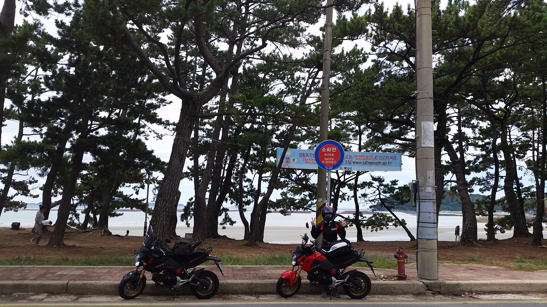 라면한그릇에 데워진몸으로 다시금 힘을내어 남해로 고고~~한가지 해남에서 남해오는 국도가 자그마치 85km동안 직진구간으로 지금까지 겪은 최대길이의 직빨구간이었습니다~^^ 바이크 최고속을뽑기에 좋은길인것같습니다~♡