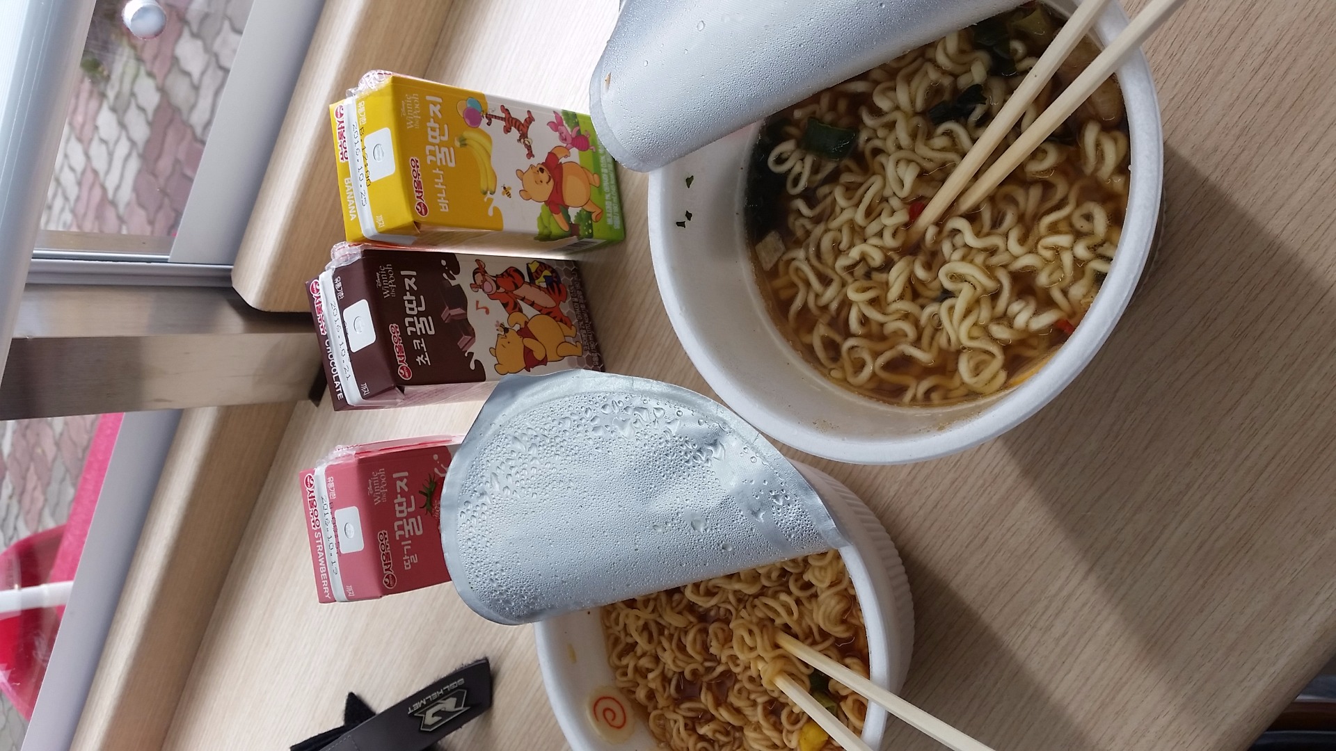 가는내내 짧게 비가 오다말다를 반복합니다 결국 가방을 보호하기위해 가방커버를 씌우고 편의점에서 뜨뜻한 라면국물로 몸을 데워줍니다~