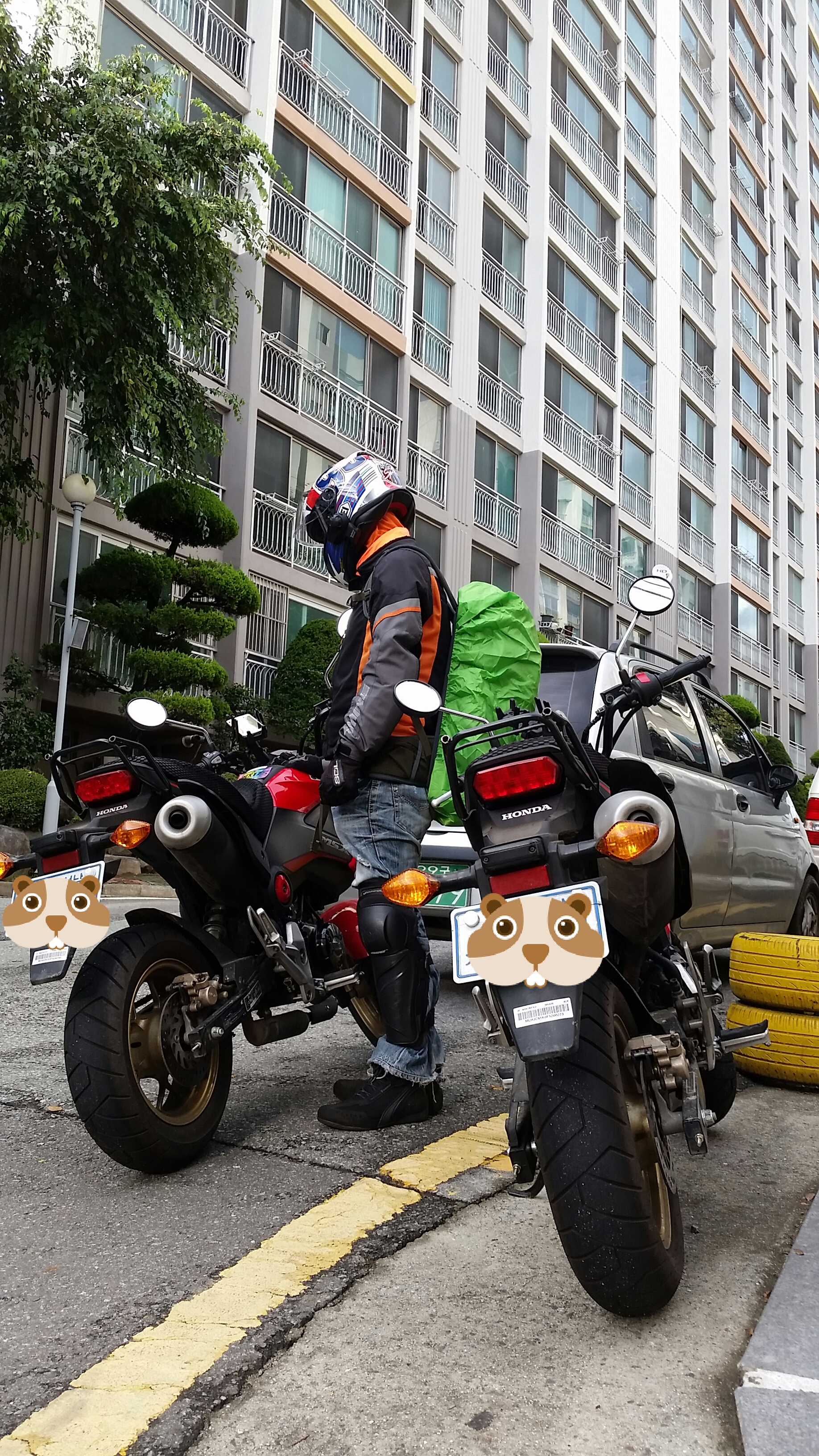 더헛~?!그게 보이세요? 대단하시네요~^^검정엠엑이가 제가타고 빨강엠엑이가 와이프가탑니다 거의 같이다니고 같은길 같은 킬키로수를 보이지만 제가 더 무겁다보니 타야닳는게 제가더빠르네요~ㅋㅋ 그래도 사진으로 분간갈만큼 큰차이는 아닌데요ㅋ |