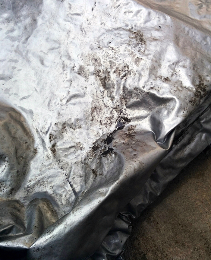 마당에 커버 깔아놓고 열심히 문질러 주고~ 널어서 물도 뿌렸습니다.