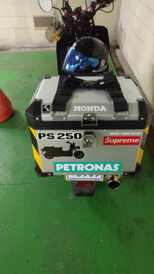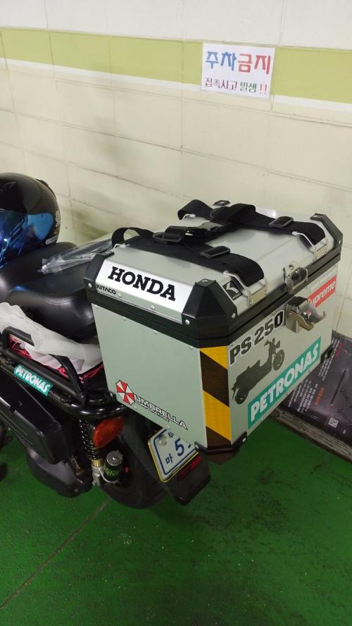 이것이 ps250의 리어캐리어인데요 일반적으로 pcx같은 스쿠터에 달리는 탑박스 브라켓이랑 다르게