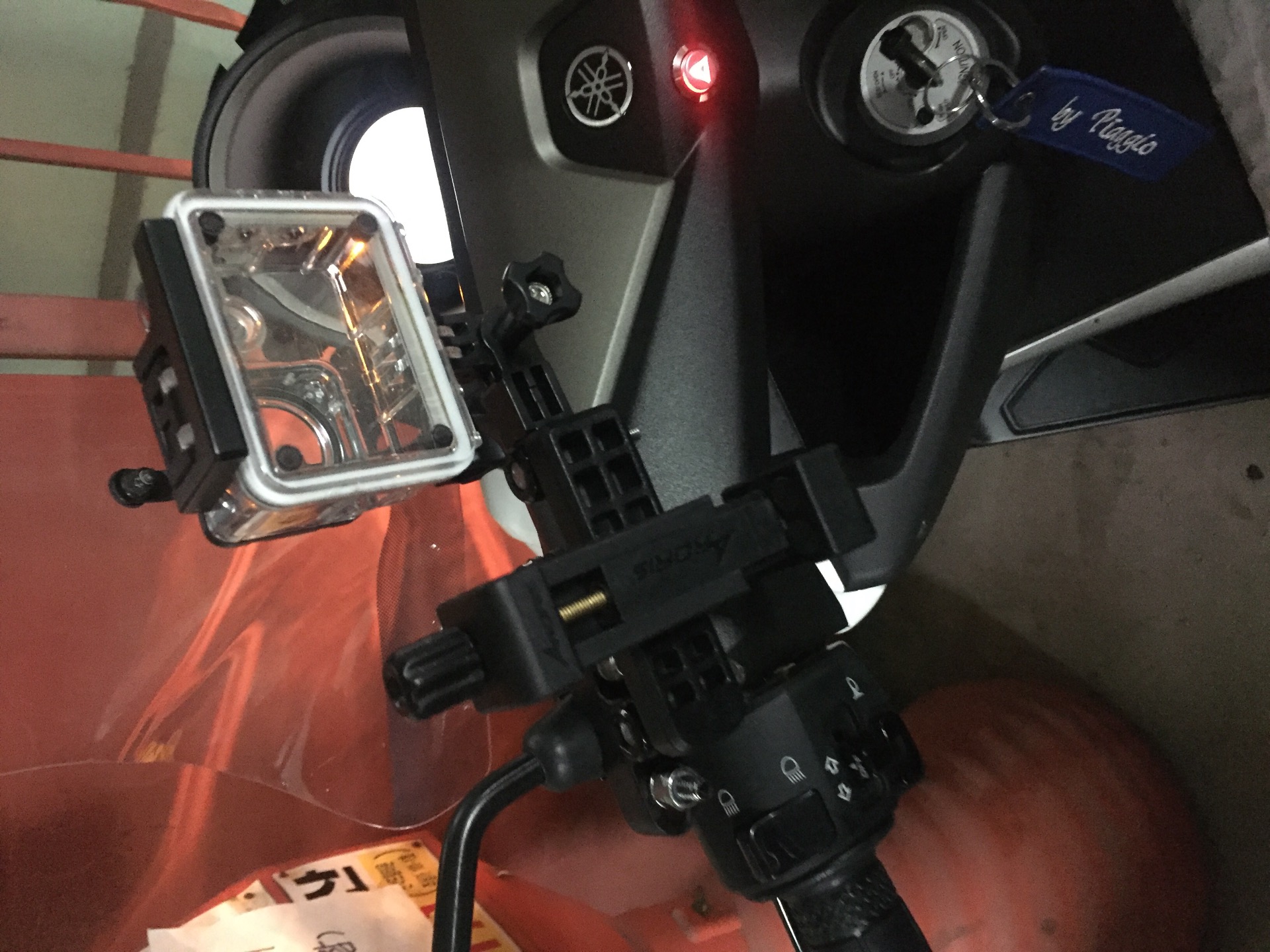 전 다시 위치바꿨어요 마스터 실린더에 그냥 스티커 붙여서 달아봤어요 ㅋㅋ 아로리스에 같이 달면 진동이 쫌 심하고 고정이 어려워서