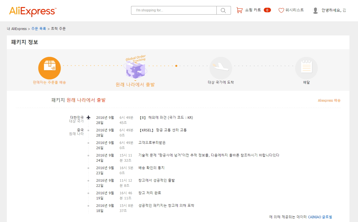 알리 배송조회 이 상태에서 어느정도 걸릴까요?
