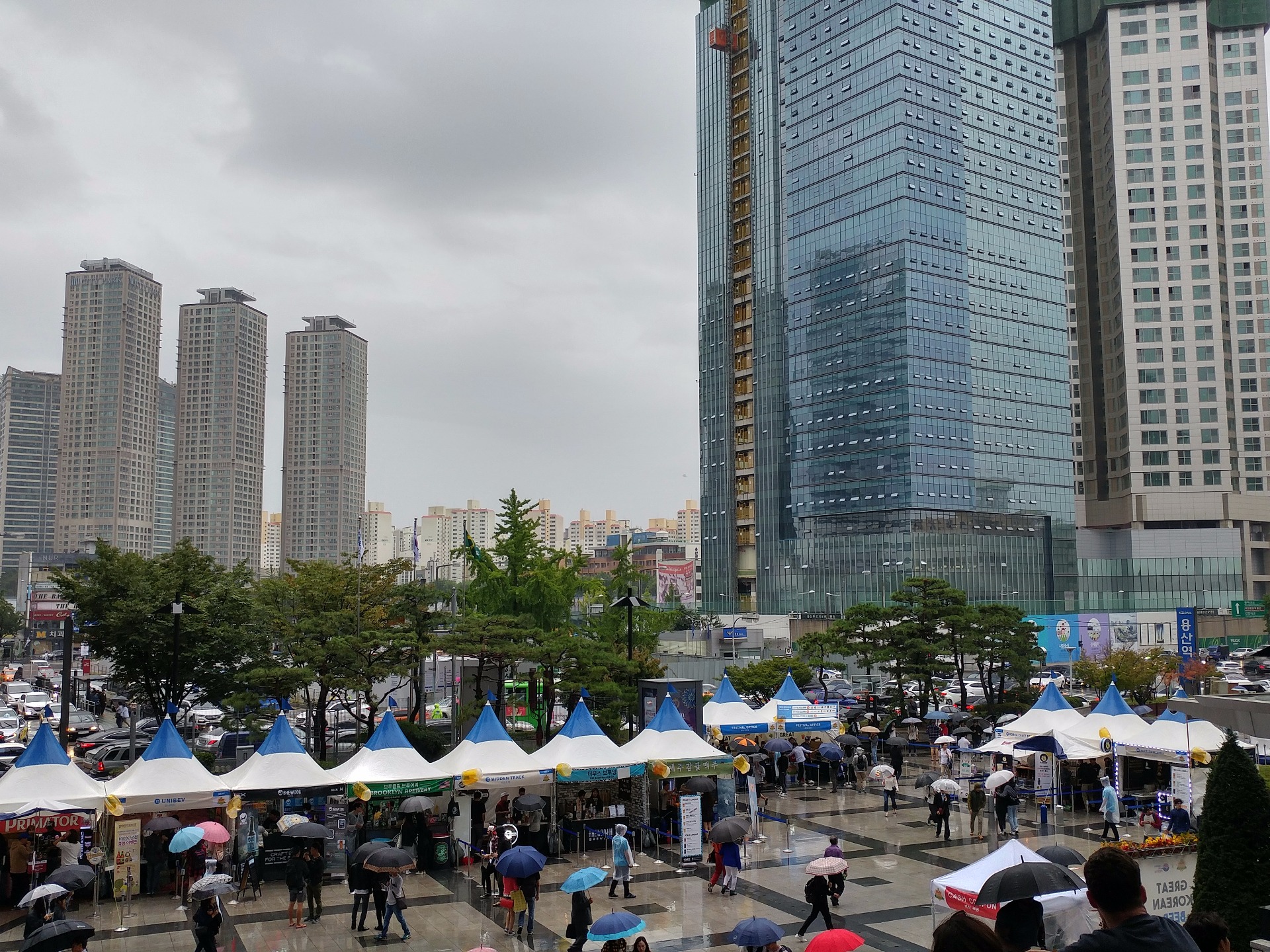여름에 삼성동서 할 때는 간이 테이블이 많아서 자리잡고 마시기 좋았는데 이번 용산은 스탠딩 테이블 몇 개만 갖다놨나봐요. 비오는 날 서서 맥주 마시기는 ㄷㄷ