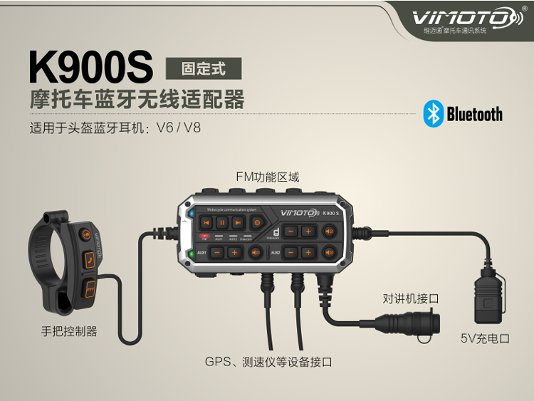 K900S는 리모콘, USB충전구, 2개의 AUX, 무전기접속구(무전기 기능X), 라디오