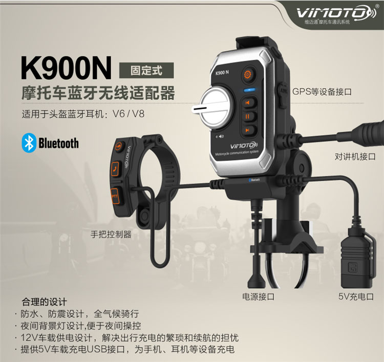 K900N는 리모콘, USB충전구, 1개의 AUX, 무전기접속구(무전기 기능X)