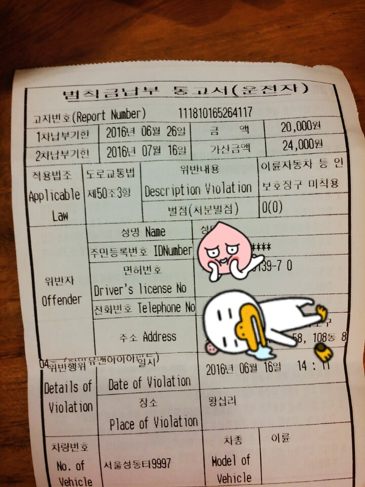 도망갈수있었는데.. 순순히 잡혀서 그런지...원래대로라면... 중앙선침범인데 벌점도ㅠ없고 젤 싼거로 끊어주셨네요..