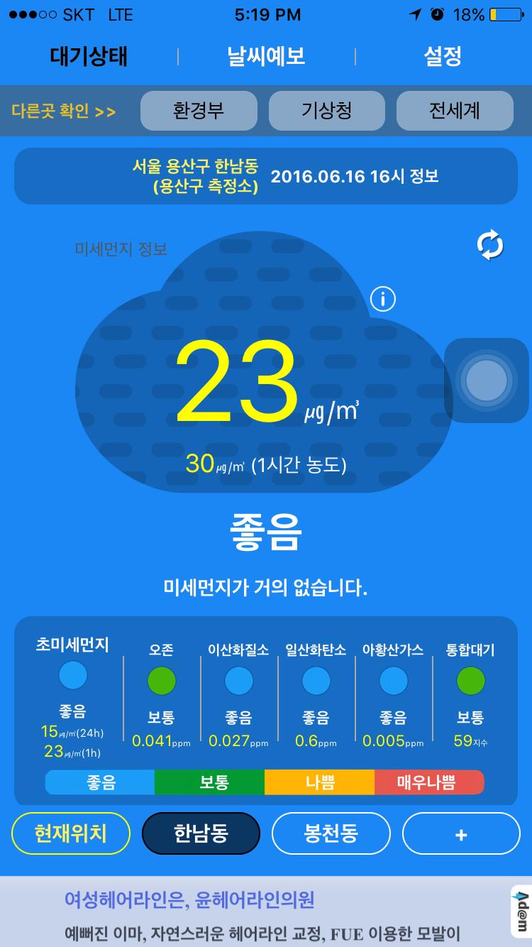 일본이나 중국 미세먼지 어플 검색해서 보세요.