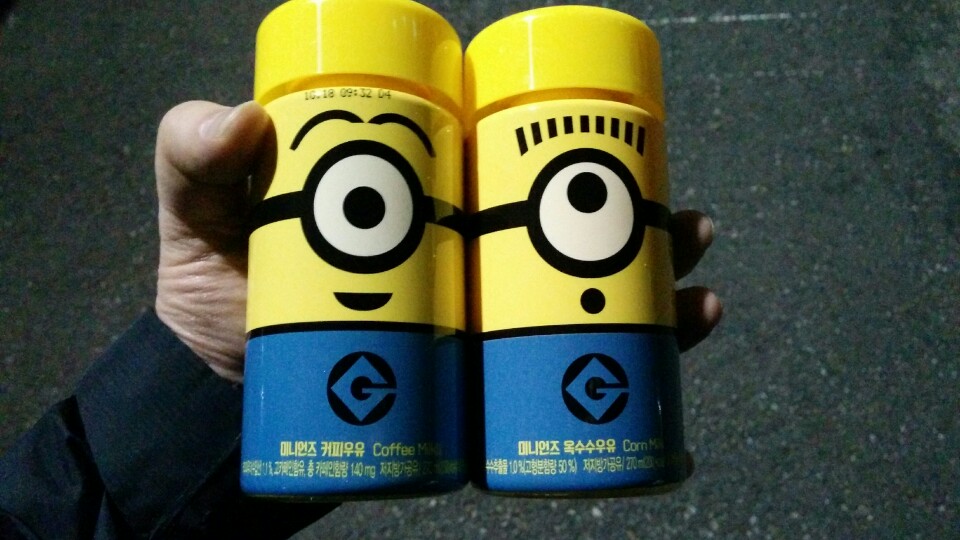 옥수수와 커피우유를 사왔습니다.