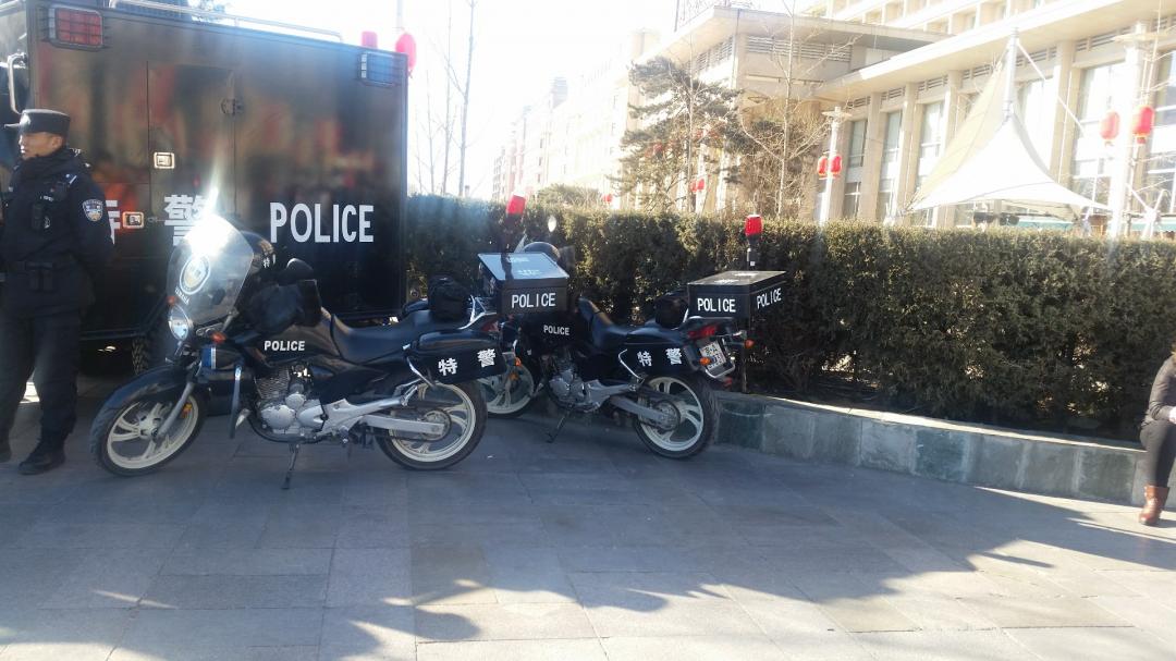 밑에 사진은 왕푸징 거리 입구에 있던 경찰바이크에요.