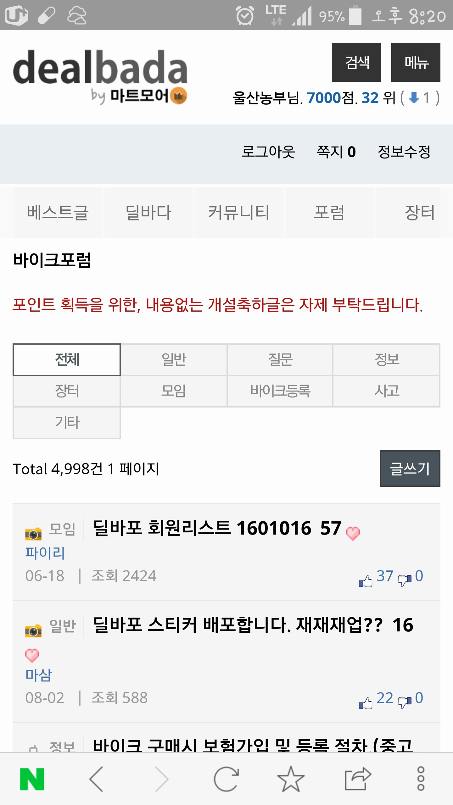 와 7000점!! 그러고보니 유머게시판 댓글에 농부님 댓글을 많이 본 것 같아요 ㅎㅎㅎ