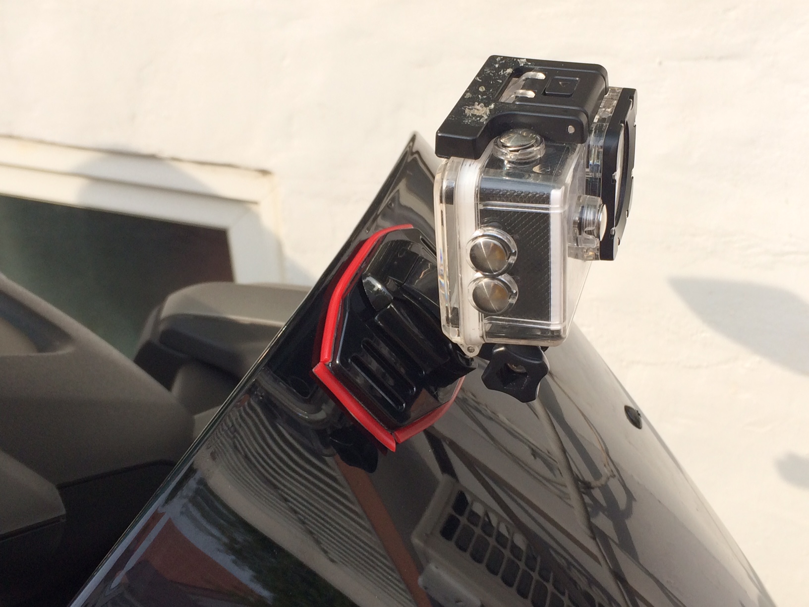 마운트는 일반적인 마운트는 너무 작고, 그에 따라 양면테이프 면적도 작아서 접착력이 부족할 것 같아 검색끝에 찾아낸 고프로 헬멧스트랩 마운트에 3m 아크릴폼 양면테이프를 이용해 부착했어요.