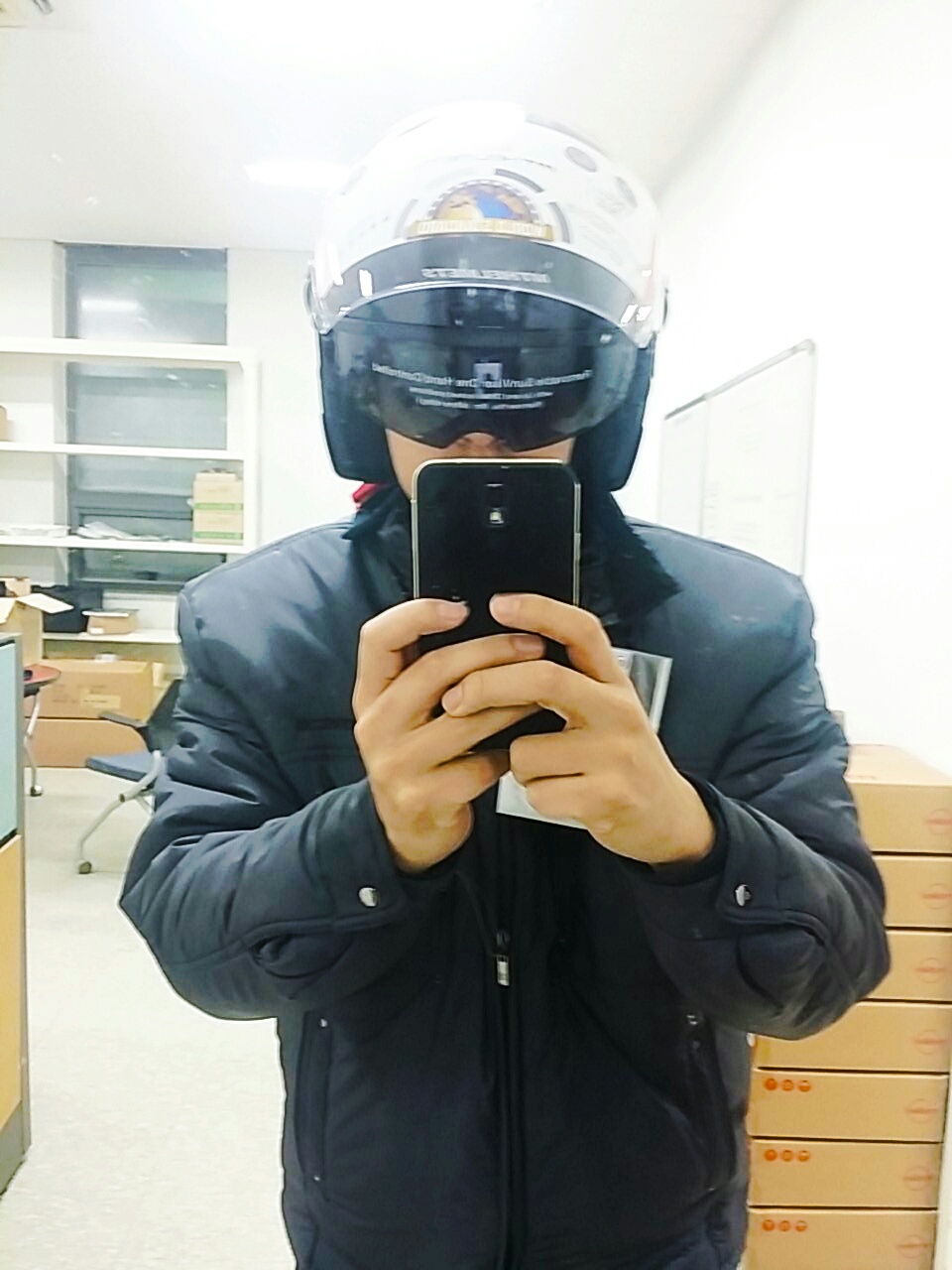 헬멧 도착하자마자 사무실에서 저러고 있었네요. 사진의 완성은 대두핏!