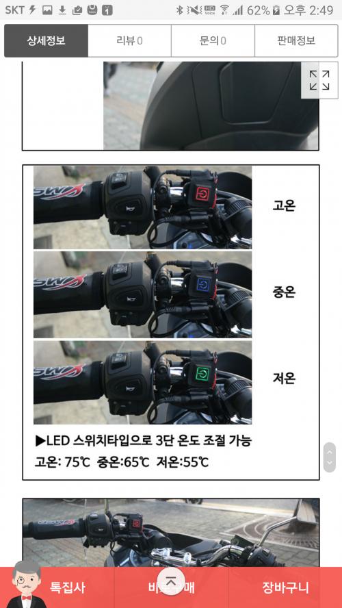 일단, 예전타던 Nex에 써봤습니다. 사이즈는 딱 맞았으나...저 선 장착하실때 주의하시길...연장선으로 조금 늘리셔야 스로틀 조작할때 떨어지지 않습니다.ㅠㅠ 그리고 도움은 되겠지만, 저같은경우 그렇게 따뜻하다? 느낀적은 없네요. 참고하세요. | ||