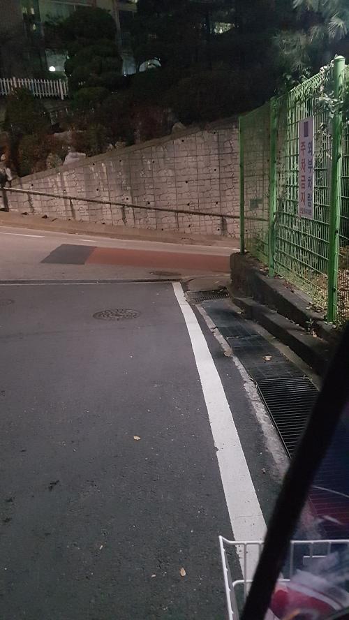 앞바퀴가 떠있어서 위쪽으로 쐈는데 실제로는 보도블럭쪽을 쏘고있습니다 ㅠㅠ 뒤에 떡,김치를 싣고 왔더니 앞바퀴가 떴었네요.
