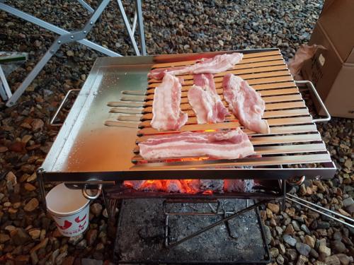명절에 본가 갔다가 처가 갔다가 캠핑장으로.. 텐트하고 바닥공사(에어박스)용 장비, 화로대만 가지고 갔는데..