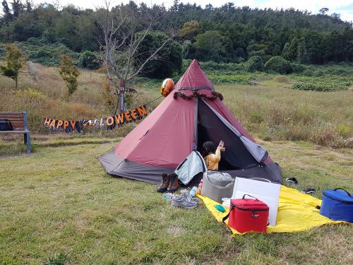 아이들과 와이프는 할로윈 캠핑이랍시고 뭘 막 꾸미네요 ㅎㅎ