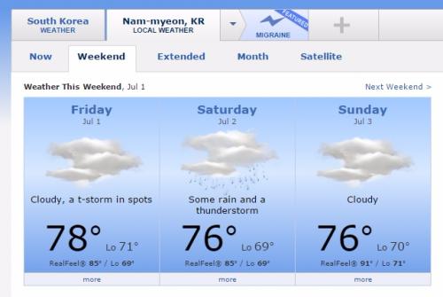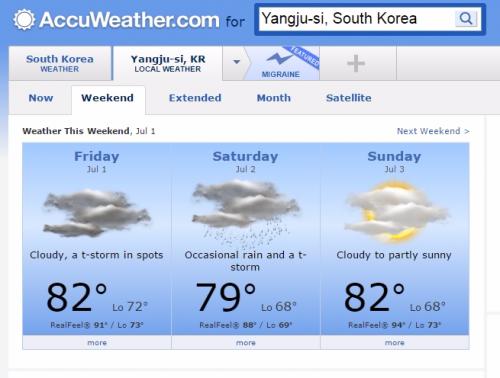 현시간 예보를 보면 대부분 토요일에만 비가 올 것 같습니다.
