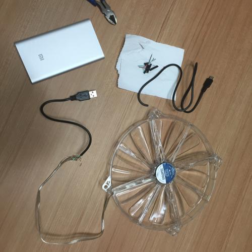 usb 케이블 하나 잘라서 연결하고...샤오미배터리에 연결!!!