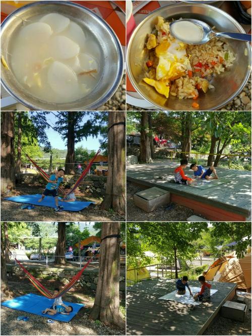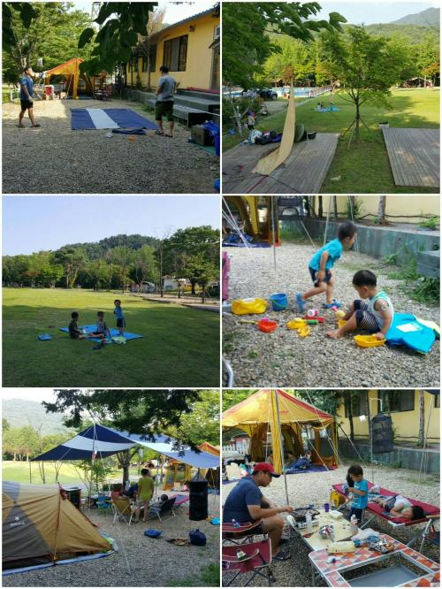 이쁜 식물들과 큰나무들이 만들어주는 그늘이 많아서 좋네유 캠핑장 가운데는 아이들이 뛰어 놀 수 있는 잔디밭도 좋구요 ㅎㅎ 애들이 많이 좋아하네유