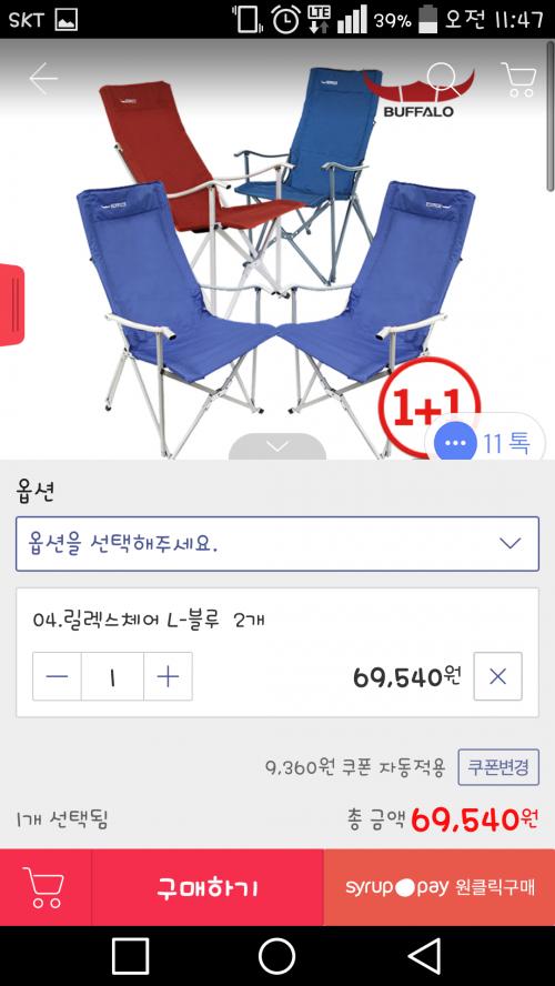 ㅡㅡㅎ 오케이몰에 "콜맨 릴렉스" 검색하셔서 디럭스 릴렉스체어나 (41000원) 이지릴렉스체어 (42800원) 한번보세요..