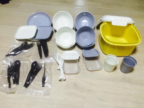 싹다 플라스틱이고 , 수저는 1회용 스럽습니다..