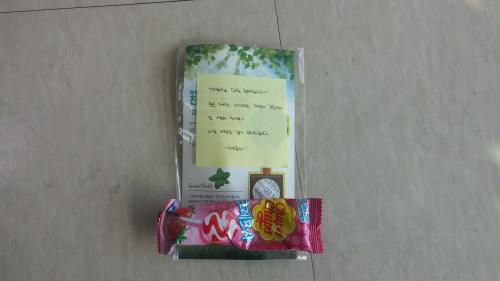 그리고 같이 보내주신 손 메모와 사탕(지금 먹고 있는데 맛나네요 ㅎㅎ)도 감사합니다.