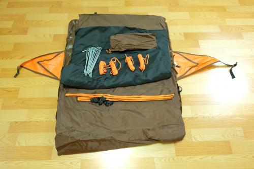 버클을 풀러보니 외피?, 이너텐트, 펙과 스트링이 있네요