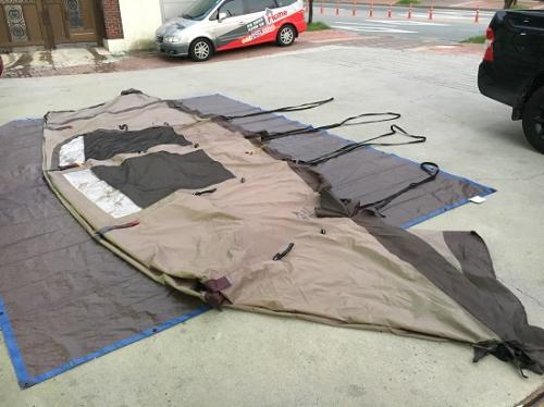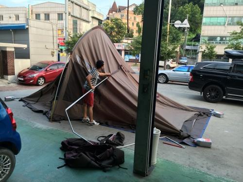 이번주 캠핑을 떠나기전 텐트 설치연습을 하필이면 저희가게 주차장에서 하시네유ㅠㅠ 배아프게ㅡㅡㅋ