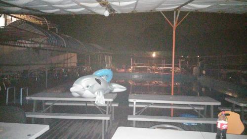 수영장 3면에 모두 테이블 있어서 낮에 시원합니다 이테이블확보가 중요한거같아요 젖은채로 텐트안에 갈수가 없으니까요 ㅎㅎ 바로 식사들도 테이블에서 하시구요 ㅎㅎ 테이블도 넓고 좋네요 차광막도 비오니 한몫해서 더욱좋았네요 ㅎㅎ이상입니다 ㅎㅎ