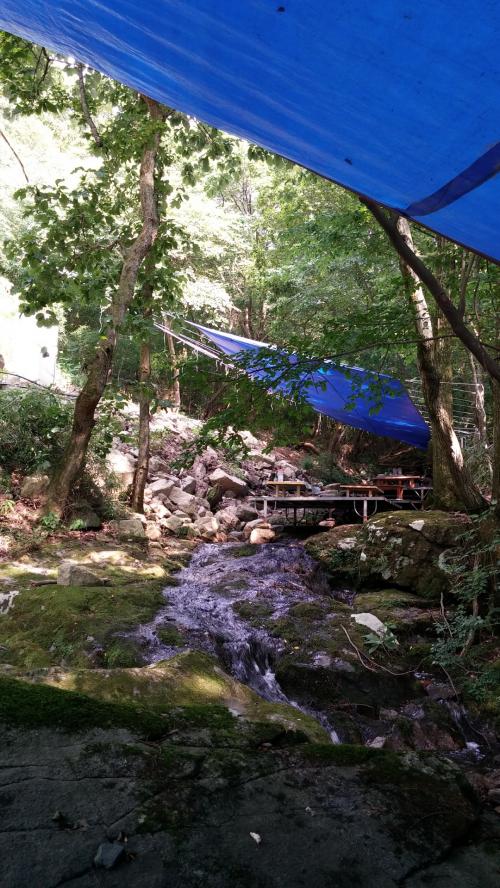 계곡따라 평상이 놓여있고