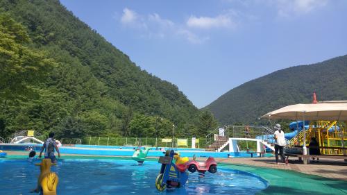 풀장에 발만 담그고 있어도 시원하네요 ^^ | ||