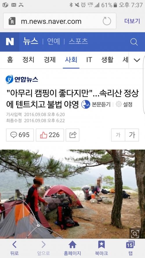 저도 아까 봤는데....속리산 정상에서 야영할 생각을.ㅡ.,ㅡ;;; | ||