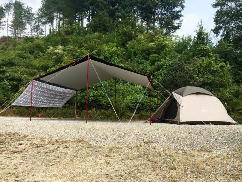 그리고 지난번 번캠때 얼떨결(?)에 제 타프가방속으로 의도적으로 접어넣은 ㅋㅋㅋ 맥주님표 딜캠포 공식 어닝도 걸어줬어요^^ 캬~~~맥주님의 어닝과 빈이파파님에게 나눔받은 스트레치코드가 신의한수^^