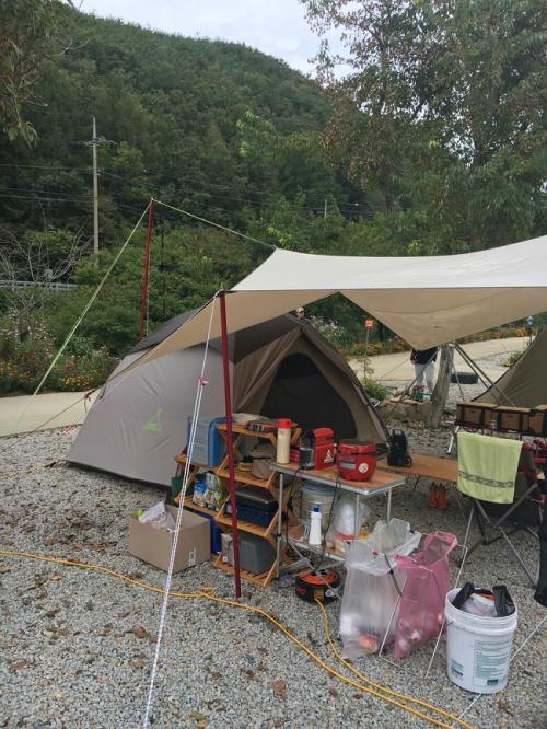 흠;;;텐트는 레인커버가 있어 전혀 걱정이 없었지만...괜히 우중캠핑에 면타프를 챙겨오는 주접을 떨어가지구ㅠㅠ