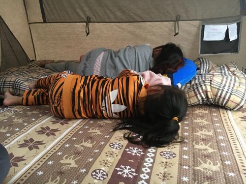 잠시 저는 텐트안에 들어와서 아이들좀 챙기는데...