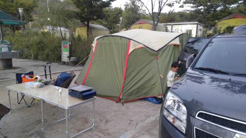 저번에 샀던 클로버돔을 쳐봤는데 아주 만족스럽습니다. 이너공간이 넓으니 가족들이 다 만족이네요. 다만 초보답게 이너텐트에 거는 플라이고리를 못 봐 30분정도 플라이가지고 연날리다가 민망하게 아내가 해결해주었네요. 멘붕에 신경질까지 났는데. . . . . . . 아
