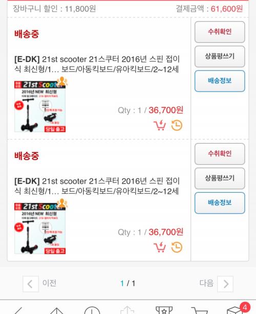 그리고 어제 저녁...안지기님께서 막둥이 킥보드 하나 사주자해서 초코과자님의 정보와 도움으로 처음 해외구매 해봤어요^^